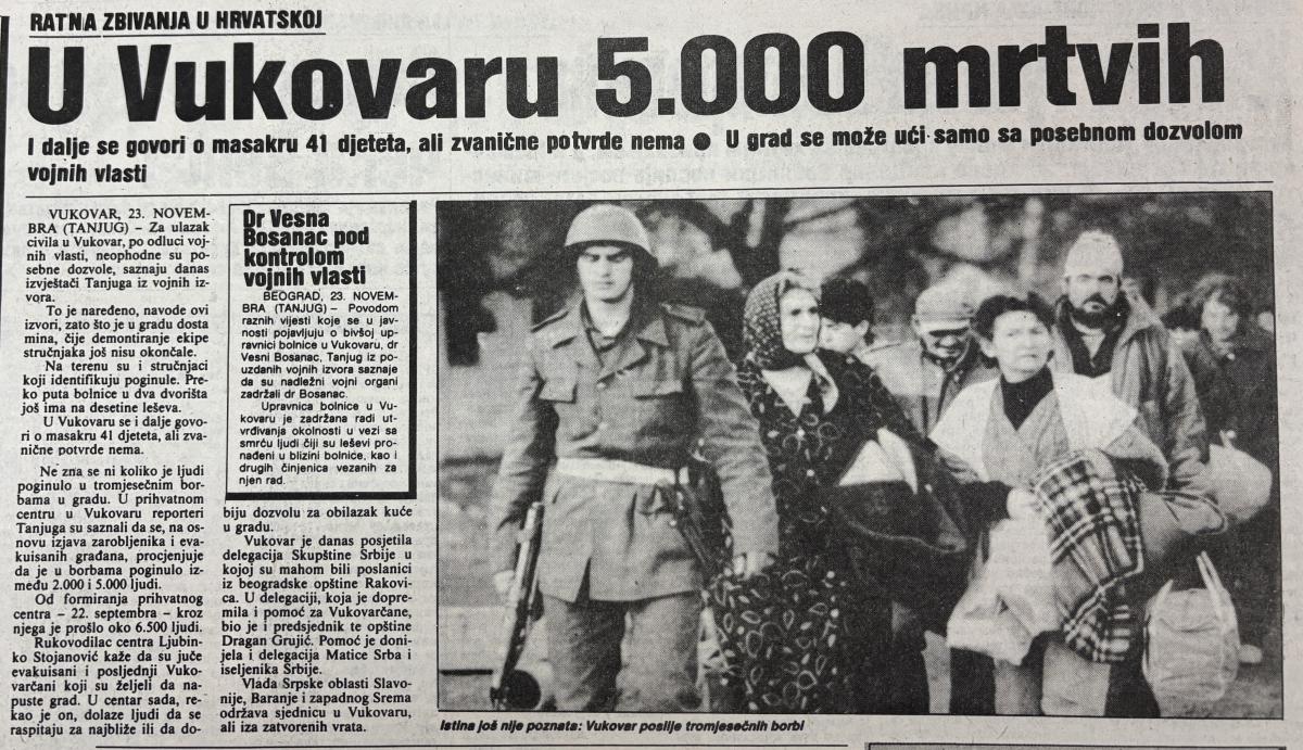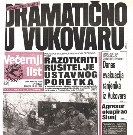 Tokom tri mjeseca bitke za Vukovar, grada na krajnjem istoku Hrvatske, u kojem su se sukobile snage Jugoslavenske narodne armije, Teritorijalne odbrane, te brojnih paravojnih jedinica iz susjedne Srbije sa pripadnicima hrvatske vojske i policije te dobrovoljaca iz cijele Hrvatske i inozemstva, taj ratni sukob nije silazio sa stranica novina, te radijskih i televizijskih izvještaja regije, ali i svijeta. Bez obzira na velike svjetske događaje u drugoj polovici 20. stoljeća, bio je to prvi rat na evropskom tlu nakon 1945. godine. I u njemu su – jedni pozitivno, a drugi vrlo negativno – mnogi novinari ispisali historiju / povijest. Zanimljivo je, nakon 34 godine, prisjetiti se kako su pad Vukovara vidjele srpske, hrvatske i bosanskohercegovačke novine.