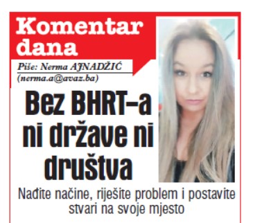 Četiri mjeseca kasnije, u komentaru na stranicama Avaza stoji naslov: „Bez BHRT-a ni države ni društva“, a u podnaslovu „Nađite načine, riješite problem i postavite stvari na svoje mjesto“.