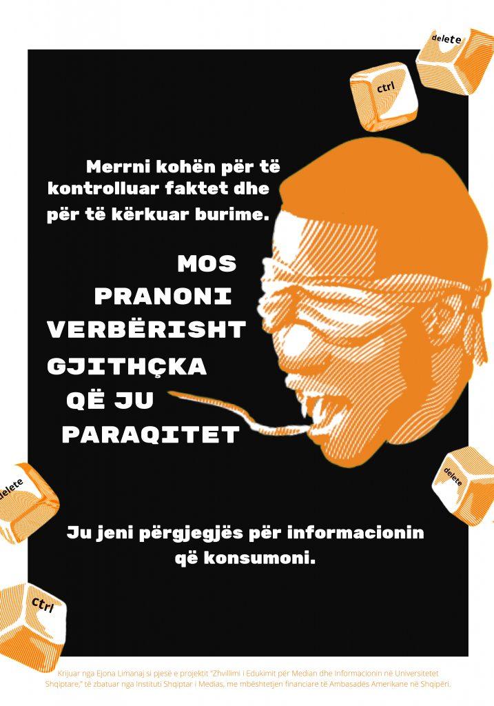 Jedna od najuticajnijih organizacija civilnog društva koja se fokusira na razvoj medija u Albaniji, Albanski medijski institut (AMI), udružio je snage sa mladim ljudima kako bi ojačao otpor zajednice prema problematičnim medijskim sadržajima. Početkom prošle godine AMI je pozvao osobe od 18 do 30 godina da učestvuju u konkursu za najbolji dizajn plakata o medijskoj i informatičkoj pismenosti. Pristigle su 22 prijave u konkurenciji za jednu od tri novčane nagrade. Pobjednički posteri promovirani su na internetu i uskoro će se distribuirati univerzitetima širom Albanije.