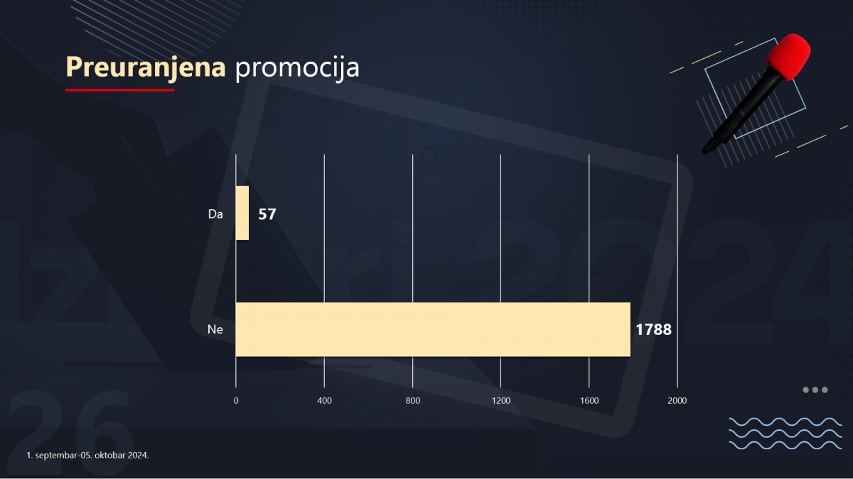 Podaci predstavljeni ovdje obuhvataju period od prvog septembra do petog oktobra 2024, a detaljna i sveobuhvatna publikacija s rezultatima i analizama slučajeva bit će objavljena početkom sljedeće godine.
