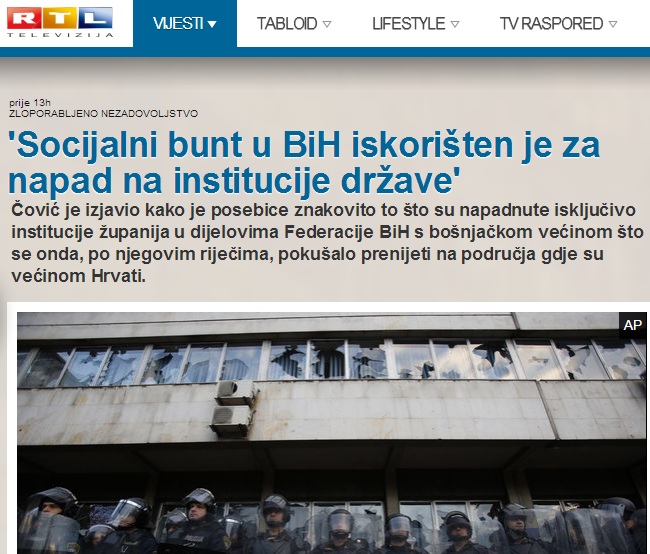 Možda najplastičniji primjer predstavlja popularan portal index.hr koji je od naslova "Ajmo Bosno" objavljenog 7. veljače, samo jedan dan kasnije došao do racionalnog zaključka kako posrijedi nije samo socijalni bunt već i pitanje preustroja Bosne i Hercegovine, kako stoji u opširnom izlaganju Borislava Ristića.