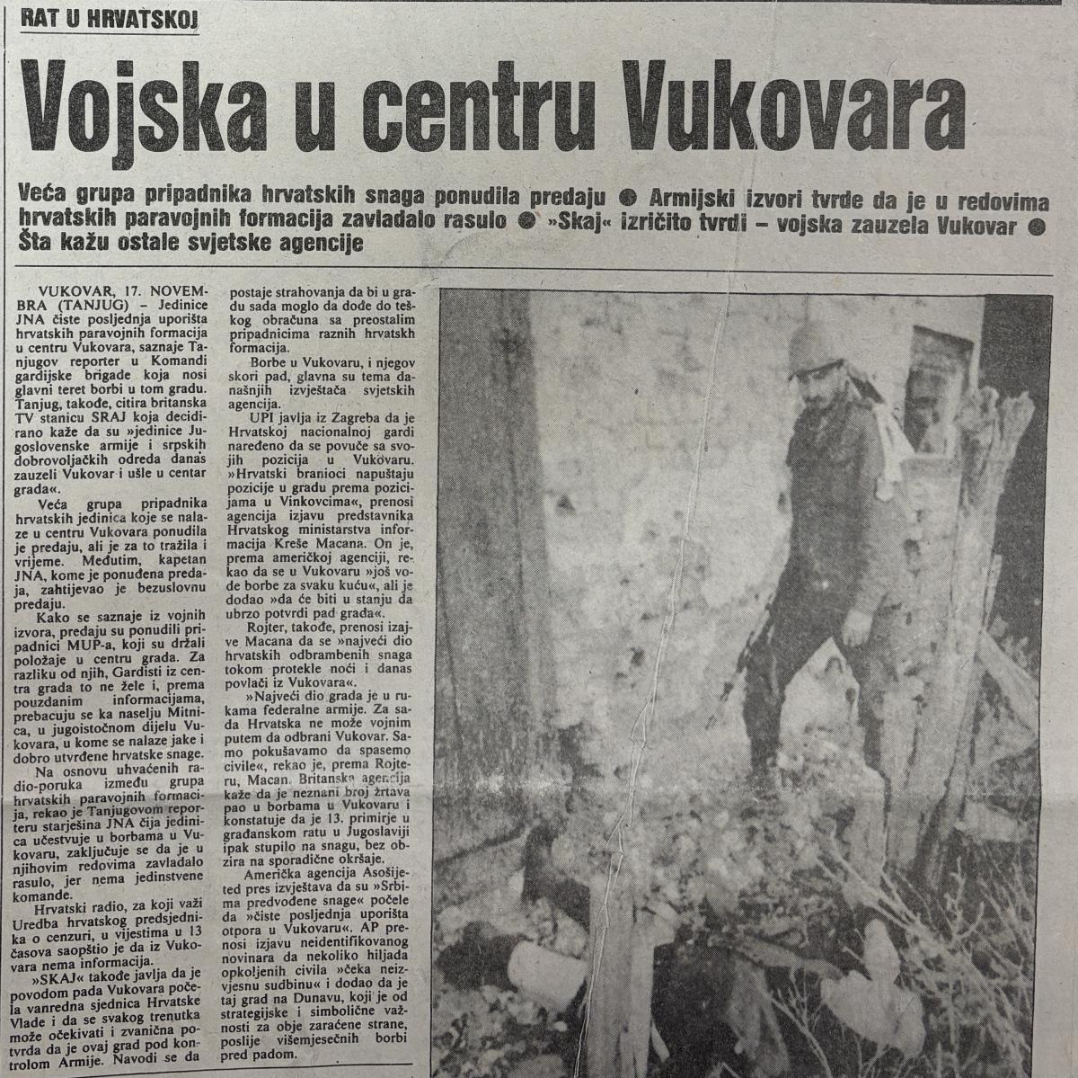 Ako se zna da su izvještaji koje Oslobođenje donosi u drugoj polovini novembra 1991. godine uglavnom bili iz Tanjugovog servisa, jasno je i kako je o padu Vukovara izvještavao sarajevski dnevni list. Druga je priča kad su u pitanju reportaže novinara koji su otišli u razrušeni grad nakon pada, odnosno komentari koji su tim povodom napisani.