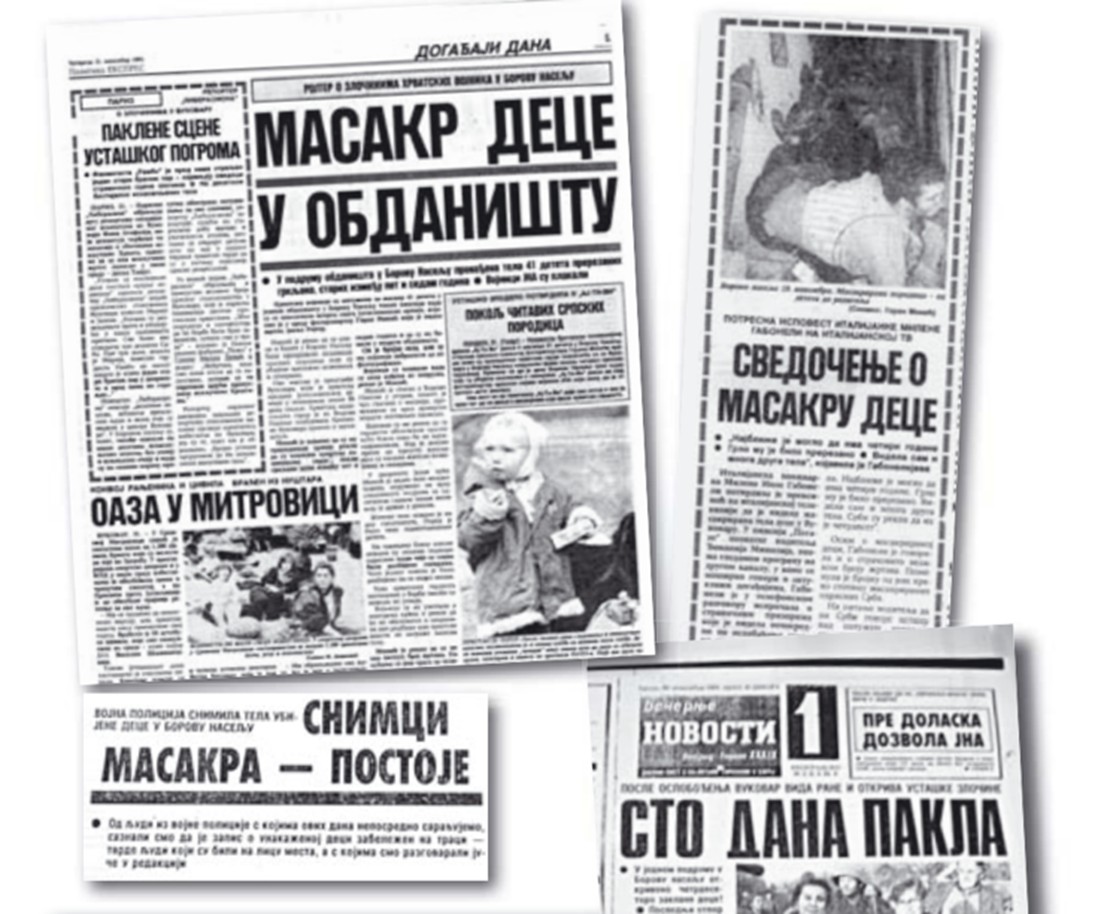 Do kraja novembra redaju se naslovi: „Zveri klale u ponoć“, „Stravični masakr“, „Sloboda stigla u pakao“, „Vučja jama pod Borovom“, „Ponosni na – zločine“, „Otkrivanje masovne grobnice“, „Minirali leševe“, „Svetu stao dah“, „Bitka za istoriju“…