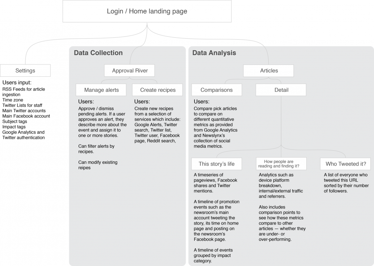 Istraživači Tow Centra, Michael Keller i Brian Abelson pokrenuli su platformu na GitHubu, sa ciljem da postane alat za upravljanje i praćenje rada, i analitička platforma za online medije koja može biti "uključena u bilo koji izvor na internetu".
