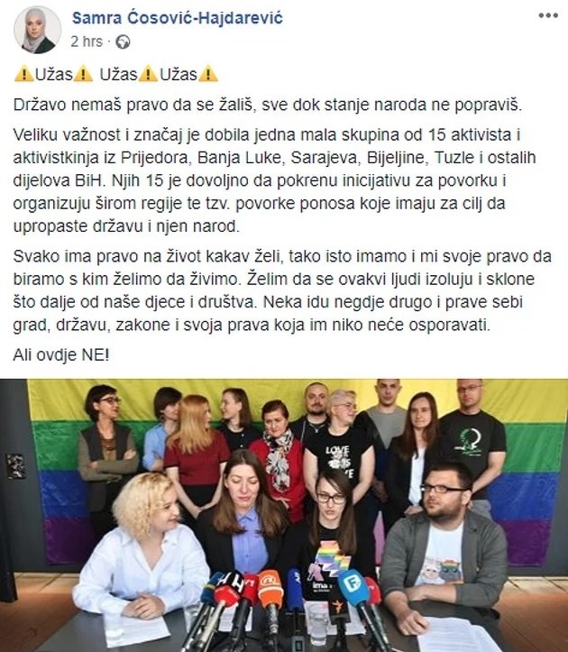 Ovo je očiti primjer govora mržnje sa kojim se svakodnevno imamo priliku susresti. Lavina sličnih komentara je krenula nakon ove objave, ali i onih objava koje su prenosili i određeni mediji.